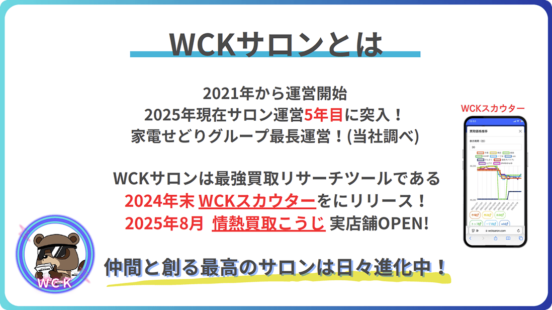 WCKサロンは、物販ビジネスに挑戦するすべての人のためのオンラインコミュニティです。